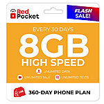 360-Day Red Pocket Prepaid Plan: Unlimited Talk & Text + 8GB LTE / Month
