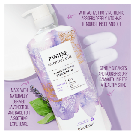 Pantene Essential Oils Moisturizing Shampoo Lavender Oil & Basil, 38.2 fl oz - $3.97
