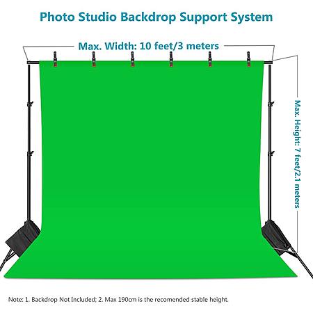 Model: Neewer Photo Studio Backdrop Support System, 10ft/3m Wide 7ft/2.1m High Adjustable Background Stand with 4 Crossbars, 6 Backdrop Clamps, 2 Sandbags, and Carrying Bag for Portrait & Studio Photography