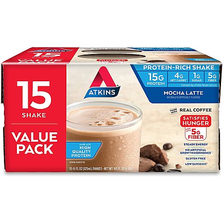 15-Count 11-Oz Atkins Gluten Free Protein-Rich Shake (Mocha Latte) $14.04 w/ S&S + Free Shipping w/ Prime or on $25+