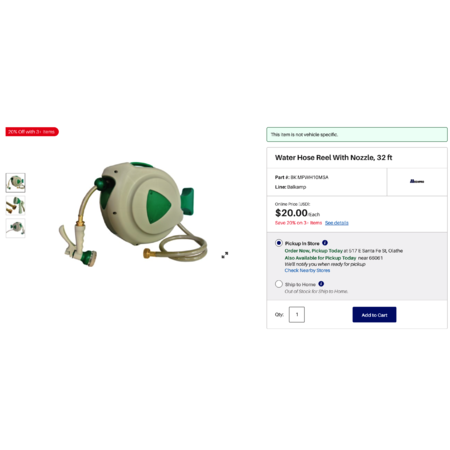 ONLY $20! 32-foot garden hose with sprayer AND AUTO-RETRACTING REEL (Napa Online store) YMMV