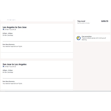 United Airlines and Expedia have round trip airfares travelling from Los Angeles (LAX) to San Jose Costa Rica (SJO) for $294, nonstop. These are basic economy fares, a restricted-type fare that only allows a small personal item that fits under the seat in front of you. There is no changes or seat selection and a carry-on bag is not included in this fare.