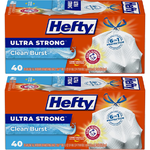 2-Pack of 40-Count Hefty 13-Gallon Ultra Strong Tall Kitchen Trash Bags (Clean Burst) for