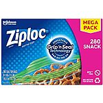 Ziploc Snack Bags with New Grip 'n Seal Technology, Ideal for Packing Cookies, Fruits, Vegetables, Chips and More, 280 Count~$5.78 After Coupon & S&S @ Amazon~Free Prime Shipping!