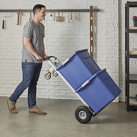 About the Product- 1000 lb. load capacity as 4-wheel cart and platform cart, 800 lb. load capacity as 2-wheel hand truck