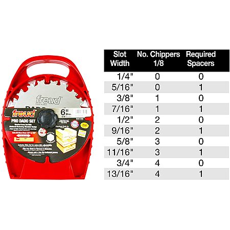 Freud 6" Professional Stacked Dado Set w/ Kickback Reducing Shoulder Design