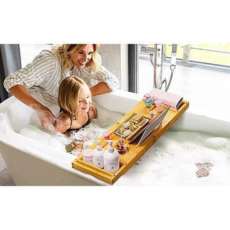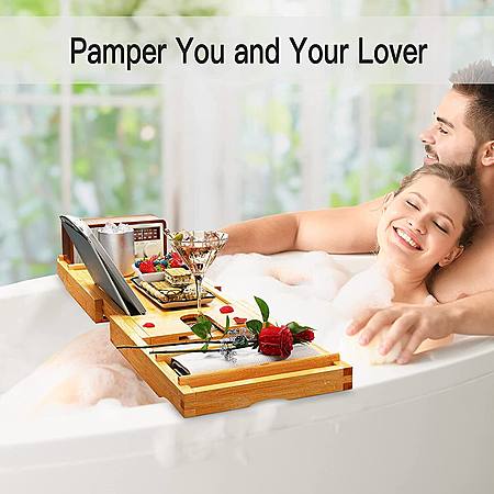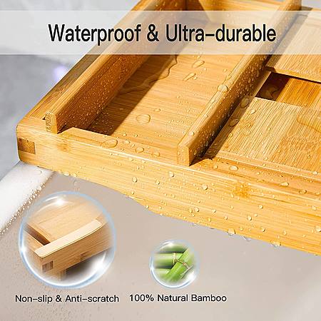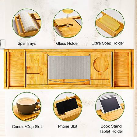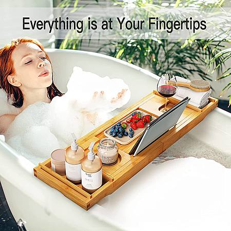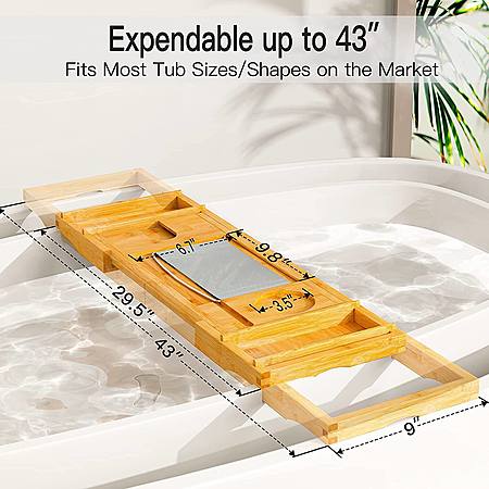 Expandable Bamboo Tub Tray Bath Table with Book Stand & Tablet Holder & Wine Glass Slot $14.99 + Free Shipping w/ Prime or on $25+
