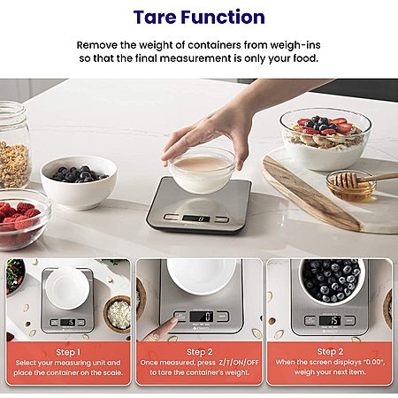 Tare Function: The tare function allows you to subtract the weight of container, and can help you get the accurate reading for food & ingredients