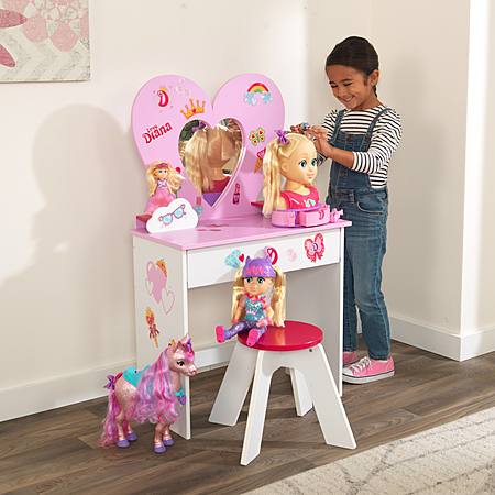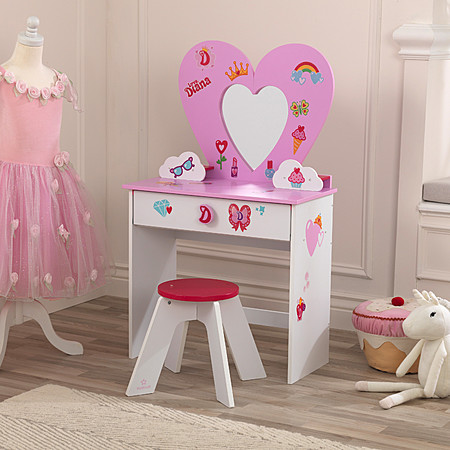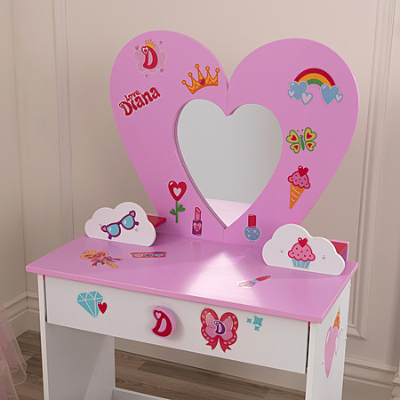 KidKraft Kids' Love Diana Vanity Furniture Set (w/ Mirror, Stool & Stickers)