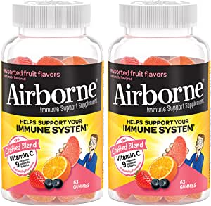 Model: Airborne 750mg Vitamin C Gummies For Adults, Immune Support Supplement With Powerful Antioxidants Vitamins A C & E - 2x63ct Bottles (126 Gummies), Assorted Fruit Flavor