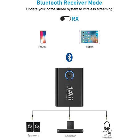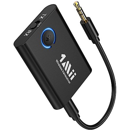 1Mii Bluetooth 5.0 Transmitter Receiver 2-in-1 Wireless Aux Adapter 3.5mm Jack, AptX Low Latency Dual Link, Bluetooth Transmitter for TV/PC, Bluetooth Receiver for Speaker/Home Stereo/Car on sale for $17.99 w/ promo code