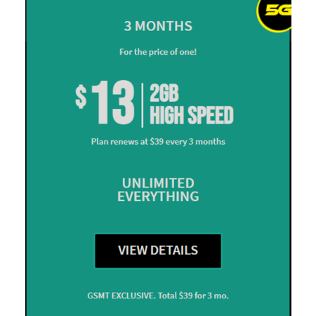 - 12GB High Speed/Month (Fast 5G speeds on GSMT)