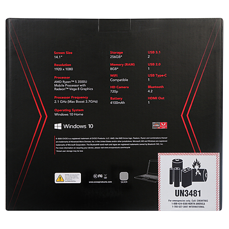 EVOO Elite Series Laptop: Ryzen 5 3500U, 14.1" 1080p, 8GB DDR4, 256GB SSD