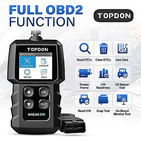 Model: OBD2 Scanner, Code Reader TOPDON AL300 All OBD2 Functions, Vin Retrieval CAN Diagnostic Scan Tool for Check Engine Light, Smog Check, O2 Sensor Test, Mode 6, EVAP Test