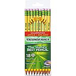 TICONDEROGA Pencils, Wood-Cased, Pre-Sharpened, Graphite #2 HB Soft, Yellow, 18-Pack (13818) $3.79