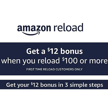 Reload $100 or more to your gift card balance for the first time and earn a $12 bonus towards your next purchase on Amazon.com. This is a limited time offer, one per Amazon account.