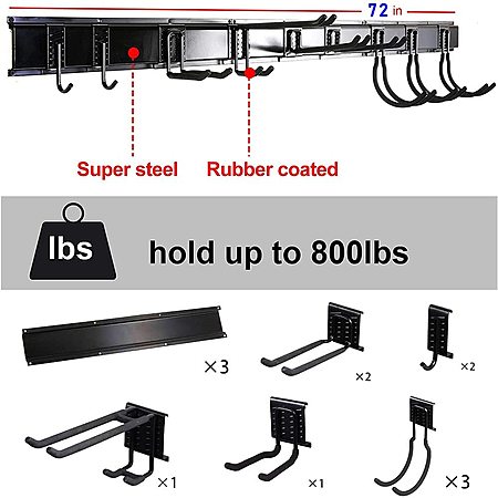 Tools.woot.com [woot.com] has 6 Ft/ 12-Piece Ultrawall Rack Wall Mount Home Storage System w/ 9 hooks and 3 rails for $$39.99. Shipping is $6 or free w/ Prime.