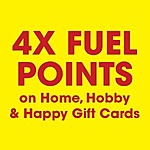 4X fuel points at Kroger on Home, Hobby and Happy gift cards. Expires 10/05/21