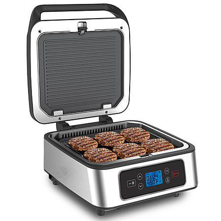 My sister in law had a bunch of complaints about this thing. I think they used it 3 times and now it's on a shelf in the garage. They cooked brats on it, and the top plate didnt get as hot as the bottom. They kept checking on it, and they didnt look done. The bottom of the brats burnt, and no matter how many times they cleaned it, it has a burnt taste on everything they cooked afterwards. I think there was a problem with the fan button also.