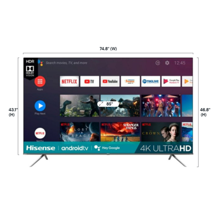 Amazon.com: Hisense 85-Inch 4K Ultra HD Android Smart TV with Alexa Compatibility (85H6570G, 2020 Model) : Electronics $1199