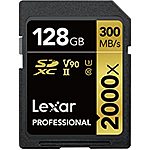 Lexar Professional 2000x 128GB SDXC UHS-II Card, Up To 300MB/s Read, for DSLR, Cinema-Quality Video Cameras (LSD2000128G-BNNNU) $109.99