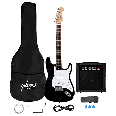 Model: Indio by Monoprice Cali Complete Full-size Electric Guitar Package with 10W Amp, Strap, and Extra Strings