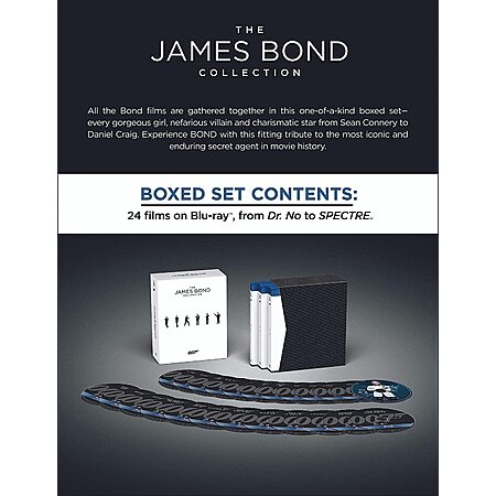 "The collection features 19 Bond movies and includes appearences by every actor to play the international spy aside from the latest to don the role, Daniel Craig. The collection also does not feature the film, "Never say Never Again" which stared Sean Connery as James Bond as an old agent years after launching the character on to the screen."