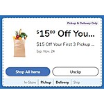 Save $15 Each on First 3 Delivery or Pickup Orders