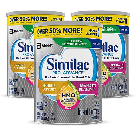 Similac Infant Formula: 3-Ct 36-Oz Similac Pro-Advance Non-GMO Infant Formula