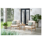Model: Hampton Bay Laurelwood 3-Piece Eucalyptus Conversation Set with CushionGuard Almond Tan Cushions