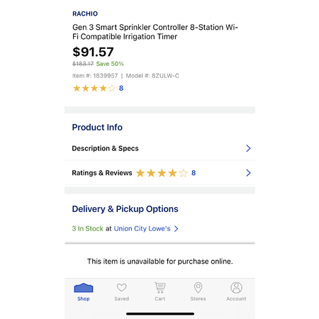 Rachio Gen3 8-Station for $92 in local Lowe's for clearance (B&M and YMMV) $91.57