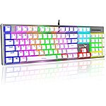 ROTTAY Rainbow Backlit Mechanical Keyboard, White Gaming Keyboard, Wired Computer Keyboard with Brown Switch and Aluminum Panel $38