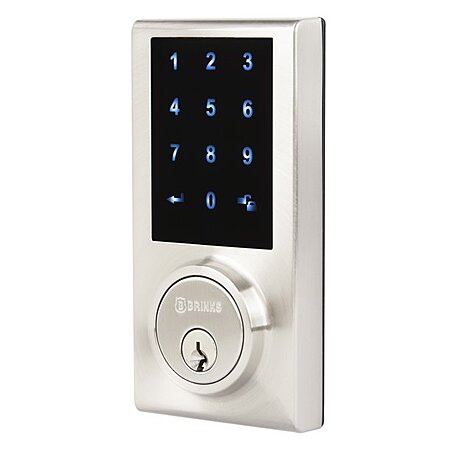 Model: Brinks Electronic Touchscreen Deadbolt Lock in Satin Nickel Finish