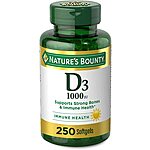 About this product:- 250-count, 1000IU Vitamin D3 Softgels for immune health. Vitamin D by Nature's Bounty may assist the immune system by helping to regulate T and B-lymphocytes. Vitamin D3 is a more potent form of Vitamin D