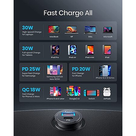 INIU 2-Port QC 3.0 Power Delivery 5A 30W USB Car Charger (Type A + Type C) on sale for