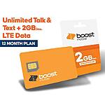 Boost Mobile Prepaid Unlimited Talk & Text, 2GB LTE Data + Free SIM (12 Months) $86