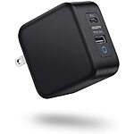 USB C Charger, ESR 65W Fast Charger [GaN], 2-Port USB C PD 3.0 Plus USB A with Foldable Plug Compatible with MacBook Pro, iPhones $12.99