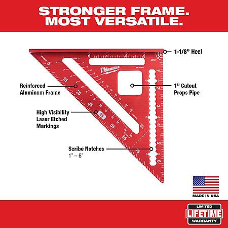 • Both Milwaukee squares feature high visibility laser etched markings that will not wear off after heavy use and are built from a durable extruded aluminum frame.