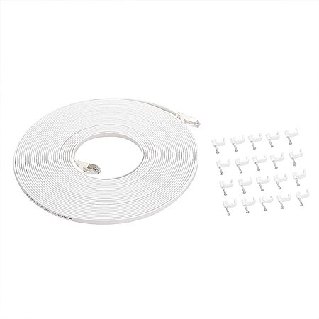 Model: Amazon Basics Cat 7 Gigabit Ethernet Patch Internet Cable, Flat - 50FT, 1Pack, White - Include 20 Nails