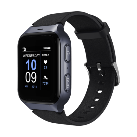 "Timex FamilyConnect Senior watch. Featuring two-way calling, heart-rate monitoring, SOS alert, and fall detection."