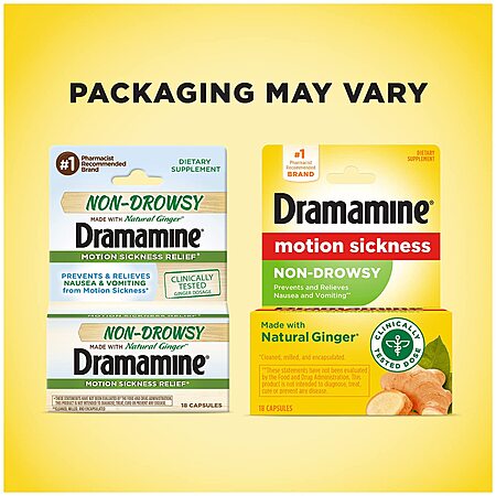 18-Ct Dramamine Motion Sickness Non-Drowsy Tablets $3.85 w/ S&S + Free Shipping w/ Prime or on $25+