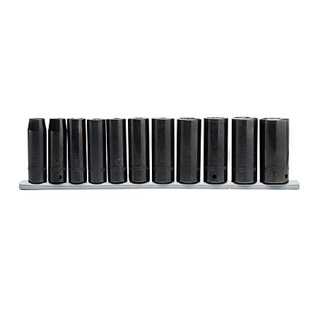 - (11) 1/2 in. drive deep impact sockets: SAE - 7/16, 1/2, 9/16, 5/8, 11/16, 3/4, 13/16, 7/8, 15/16, 1, 1-1/16 in