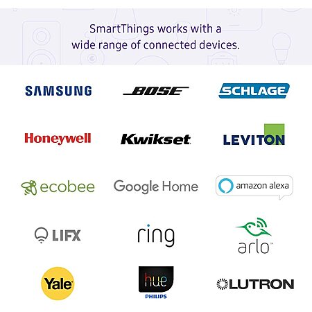 • Requirements: Must have SmartThings App and SmartThings Hub or compatible device with SmartThings Hub functionality (connected devices sold separately)