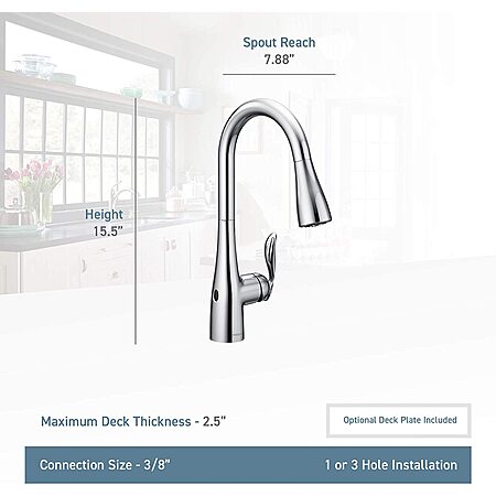 Moen Arbor Motionsense Wave Sensor Touchless One-Handle Pulldown Kitchen Faucet $220 + FS