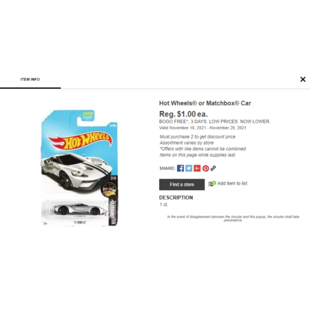 edit2: went this morning (11/18) and my local DG had zero hot wheels or matchbox. womp!