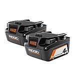 Direct Tools Outlet has 2-Pack Ridgid 18V Lithium-Ion 4.0 Ah Battery Pack (AC87004P, Factory Blemished) for $44.99. Shipping is $9.99, otherwise free store pickup is available where stock permits.