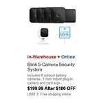 Costco - Blink 5 Camera Security System - 4 Outdoor Battery Powered Cameras, 1 Mini Indoor Plug-in Camera, with Yard Sign $100 0ff - $199