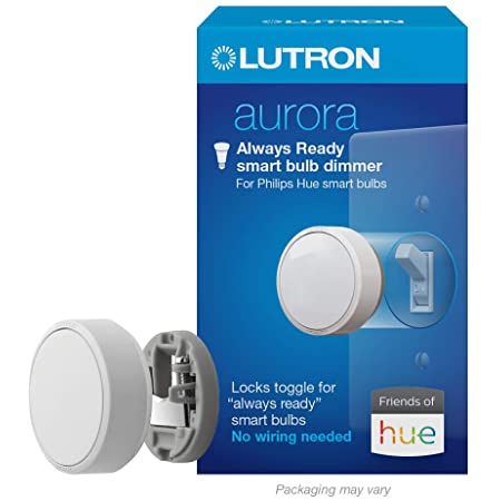 • The Aurora smart dimmer keeps Philips Hue smart lights in the "always ready" mode by locking a toggle light switch in the "on/up" position. That way, no one can ever accidentally turn the switch—and your smart bulb functionality - off. With the Aurora dimmer, you can turn smart lights on, off, or dim them, right from the wall, with an app on your smartphone, or even with your voice.