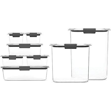 Model: Rubbermaid 16-Piece Brilliance Food Storage Containers with Lids for Pantry, Lunch, Meal Prep, and Leftovers, Dishwasher Safe, Clear/Grey
