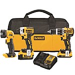 DEWALT XR 3-Tool 20V Max Brushless Power Tool Combo Kit w/ 2 Batteries, Charger & Case (DCK387D1M1) on sale for